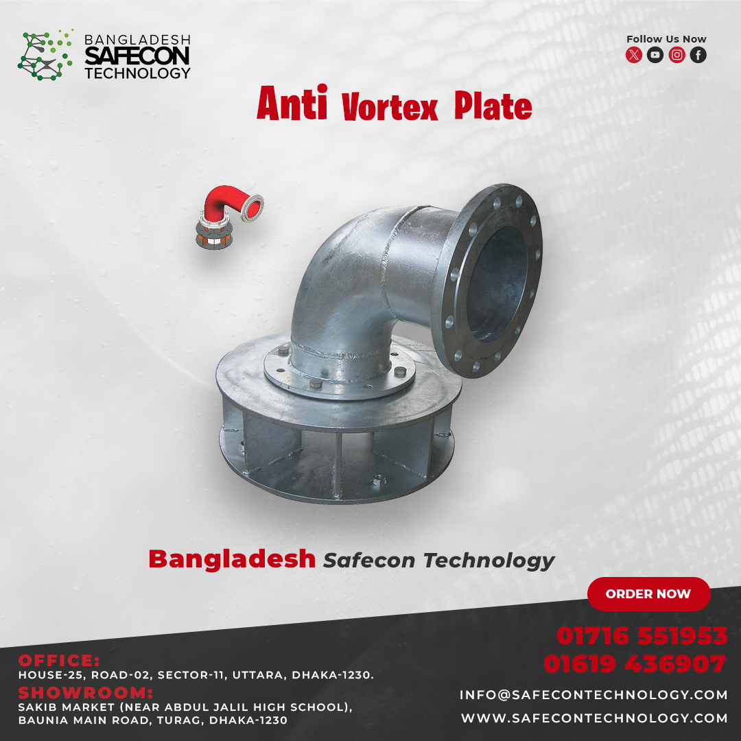 The Anti-Vortex Plate disrupts turbulent swirling flow at the intake point and promotes smooth, laminar flow into the suction pipe. By stabilizing the fluid surface and flow direction, the plate prevents air bubbles from entering the pump, ensuring reliable performance and protecting internal parts from cavitation and wear.