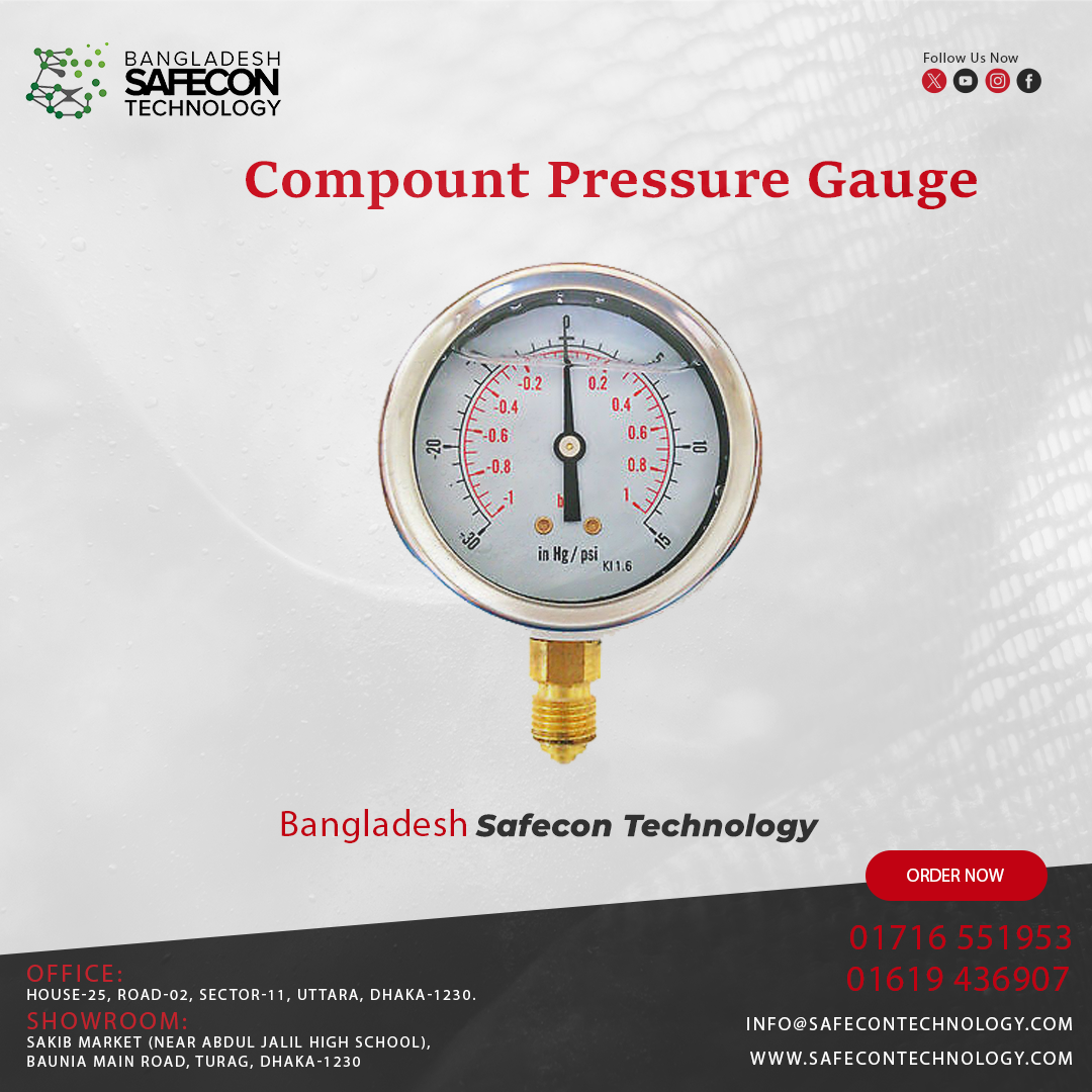 The Compound Pressure Gauge is a precision instrument designed to measure both positive (pressure) and negative (vacuum) pressures in a single device. This dual measurement capability makes it ideal for applications where monitoring pressure variations is critical, such as industrial piping systems, HVAC networks, compressors, pumps, and chemical processes.